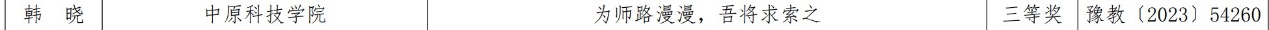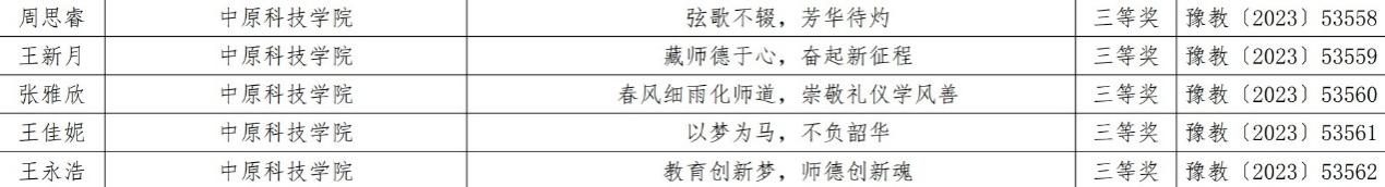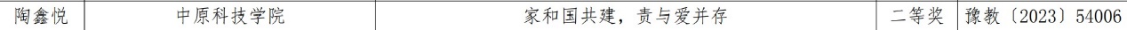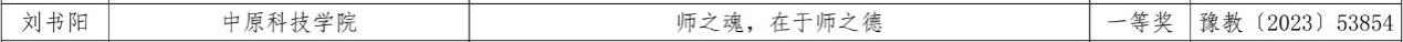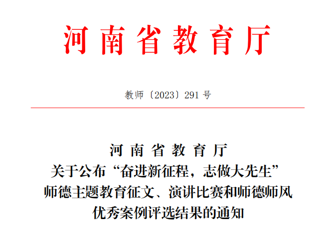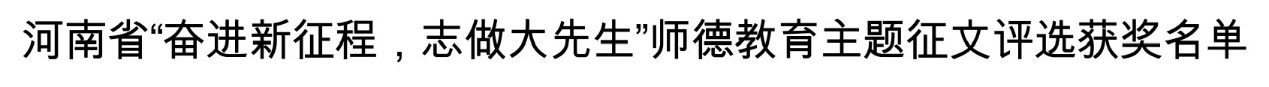 近日,河南省教育厅公布了“奋进新征程,志做大先生”师德主题教育征文评选结果的通知,我校师生获得多个奖项。教师组中,贺芳、高楠荣获二等奖。学生组中,刘书阳荣获一等奖,陶鑫悦荣获二等奖,周思睿、王新月、张雅欣、王佳妮、王永浩、韩晓荣获三等奖。