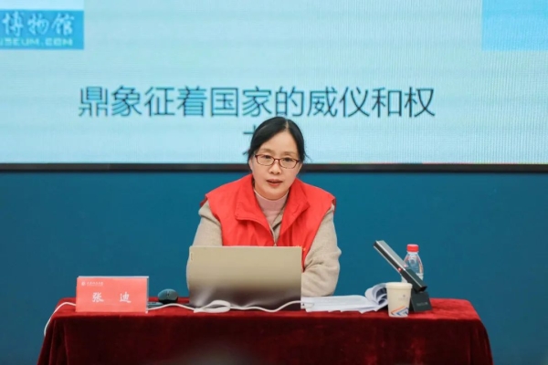 开幕式后,许昌市博物馆文物修复中心主任、副研究馆员张迪以《从青铜器看夏商周文明》为题作志愿宣讲。从“青铜器的起源”“青铜筑就的辉煌”“中华文明信使——金文”“科技的力量”四个方面让同学们了解了青铜器的起源发展历史,感受到青铜器历史悠久的文化魅力。