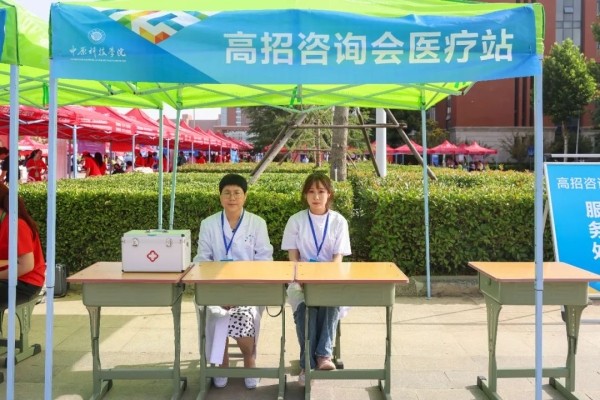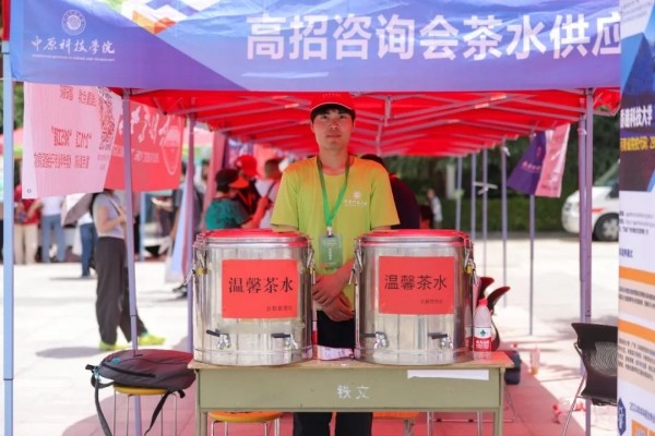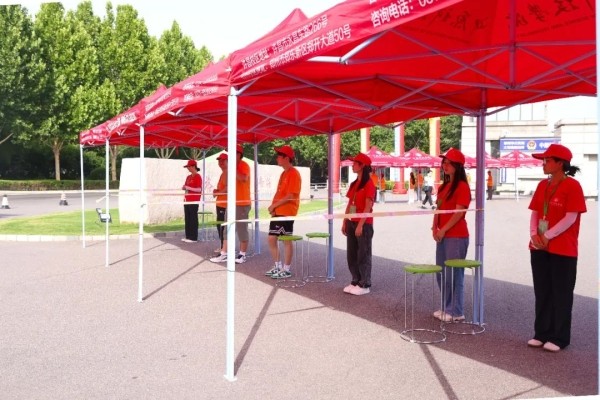 应急站、供水站、急救车,饮用水、防暑药品、风油精……细致周到的工作筹备确保招生咨询工作的安全平稳进行。