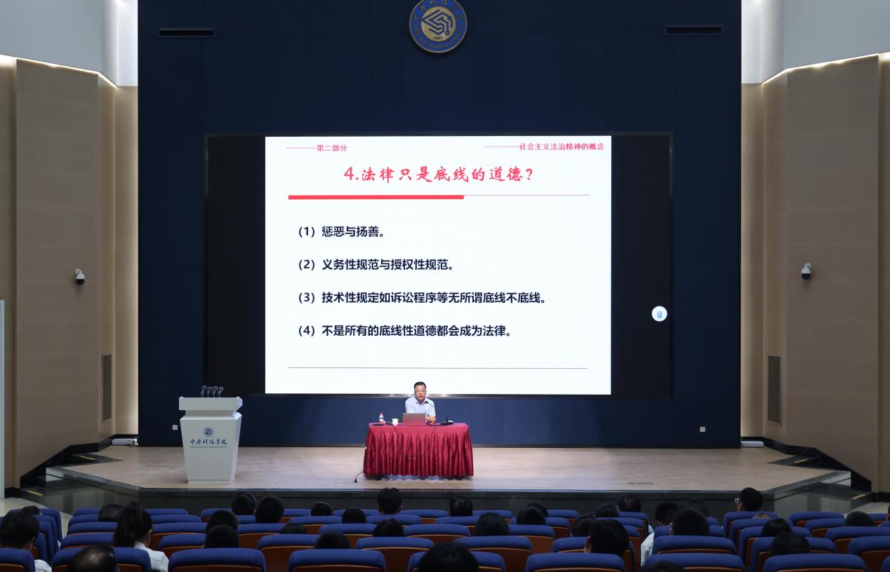 此次培训是中原科技学院新学期初加强师资队伍建设、提升干部教师综合素质的重要举措之一,有效增强了全体教职员工对社会主义法治精神的理解与认同,为新学期各项工作的顺利开展奠定了坚实的思想基础。